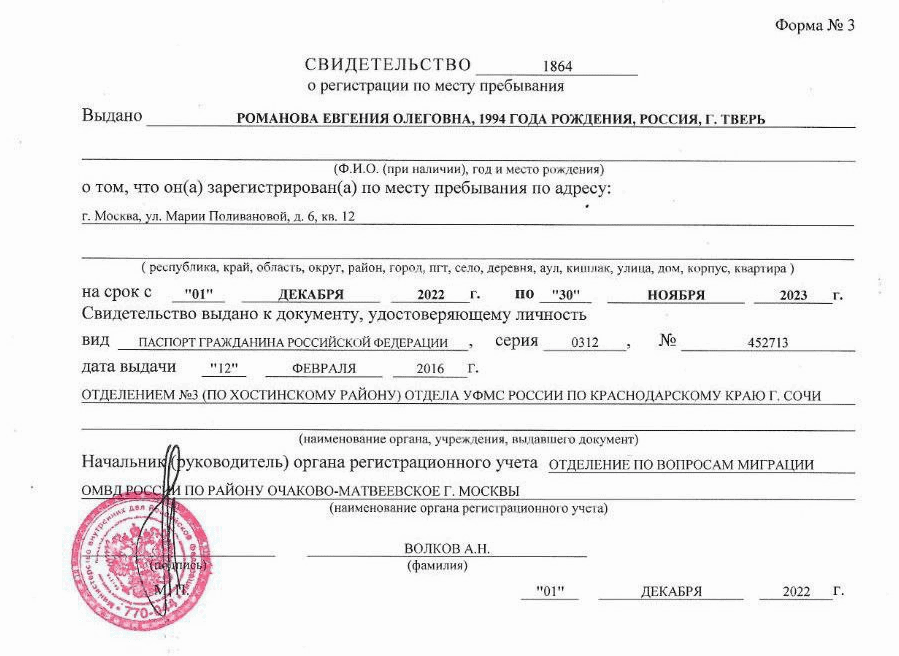 Временная регистрация в квартире в Москве, обязательно ваше личное присутствие при подаче документов вместе с нашим собственником жилья в МФЦ.